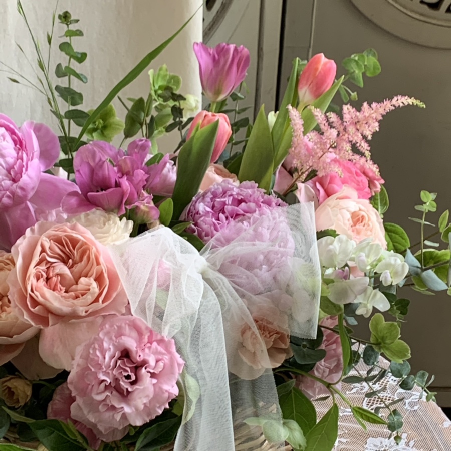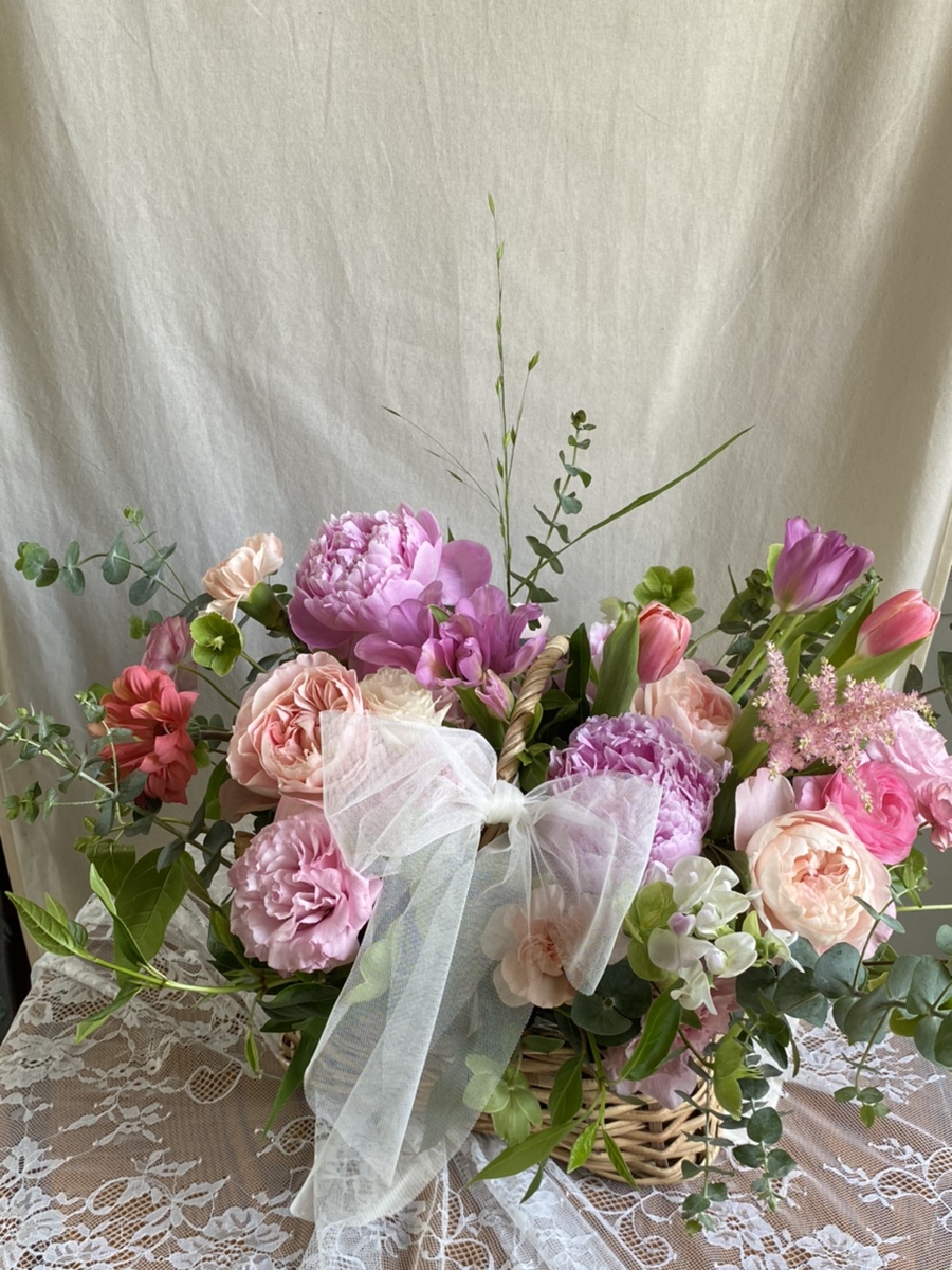 화사한 핑크톤 카네이션을 이용하여 고급스럽게 작업한 2021년 어버이날 꽃바구니